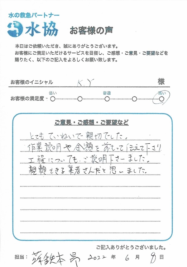 作業説明や金額を前もって伝えて下さり、工程についても、ご説明下さいました。