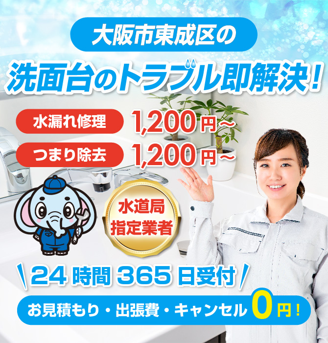 大阪市東成区の洗面台の水回り見積もり無料即日対応可
